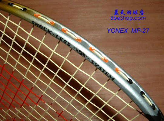 | 性能特點 | YONEX 2003年產品,結合了ISO-80VFS、ISO-90VFS和MP系列產品的特點。 1、采用了新型弧形拍框線槽設計,有效地提高了拍框頭部和羽線的耐久性,適合更大的羽線拉力,使擊球感更硬、爆發力更強; 2、在拍框內側采用了新型鈦網眼結構技術,由于新型材料鈦比碳素纖維強度硬度都高出許多,給大力擊球提供了更高的穩定性和較小的扭矩。鈦網眼部位長度:三個線孔范圍; 3、拍框兩側中部采用了新型減震線孔膠粒,使球員在大力擊球時手臂獲得“柔感”,有效地減輕了在長時間比賽中手臂肌肉的疲勞; 6、拍框下半部采用CAB盒式截面設計,減小了擊球扭矩,提高了拍面穩定性、耐久性; 7、拍框T型部位兩側特殊雙連釘護線管設計,避震效果好,更好地控制擊球的準確性,保持拍面的穩定性和拍身的平衡性。 |