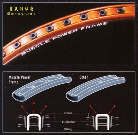 減震線孔膠粒 Muscle Power弧形筋力結構拍框線槽設計 |