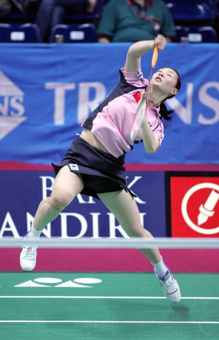 | 2004年5月7日,尤伯杯賽在印尼首都雅加達開幕。在小組賽中,中國隊以5比0輕取印度尼西亞隊,取得首場勝利。中國第一單打龔睿娜以2比1戰勝對手。 (中體在線 劉亞茹攝) |