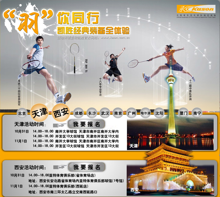 天津站 和 西安站 體驗會招募已全面啟動,天津和西安各凱勝專賣店均可報名,網上報名和更多詳情請點擊: