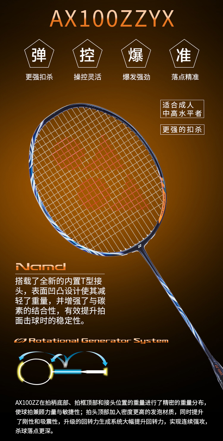 | 性能介紹 | YONEX AX天斧系列羽拍特點:屬于頭重型球拍,同時具備力量和速度,助你全力擊敗對手。適合在不斷調整力量和角度的連續進攻中尋找機會,抓住破綻擊潰對手。 |