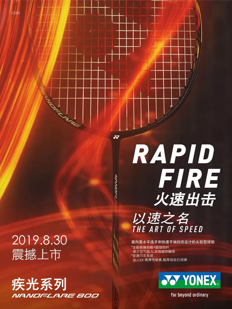 | 性能介紹 | YONEX NF疾光系列羽拍特點:疾光系列是一款能夠打出集結力量與速度制勝球的頭輕型球拍。采用了音速閃擊系統技術,是專為提升速度而設計。將新型碳素材料M40X置于拍框底部,擊球后可以立即反彈,保證了揮桿的穩定性,擊球的準確性。 |