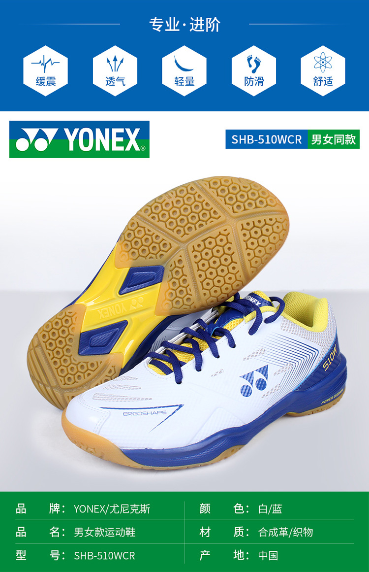 | YONEX(尤尼克斯)SHB510WCR(白藍色)羽毛球鞋 | |||