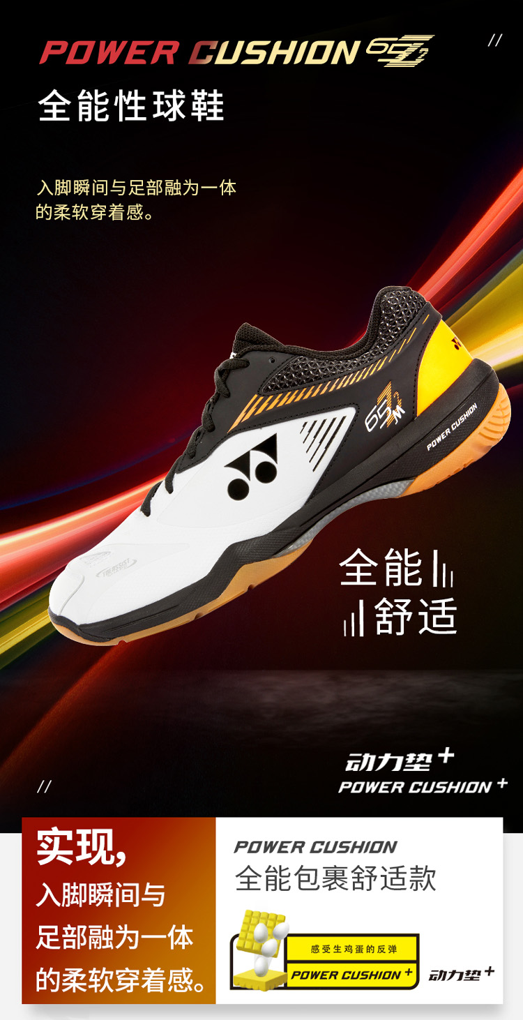 | 性能介紹 | YONEX SHB65系列是目前最多球星選穿的專業(yè)羽毛球鞋,有多種顏色可選,穿SHB65系列鞋的球星有:世界頭號男單桃田賢斗、世界頭號男雙吉迪恩/蘇卡穆約、世界頭號女雙福島由紀/廣田彩花、印尼頭號男單金汀、丹麥頭號男單安賽龍、日本頭號女單山口茜、日本頭號混雙渡邊勇大/東野有紗、印度頭號男單斯里坎斯、印度前頭號女單內(nèi)瓦爾、丹麥頭號男雙阿斯特/拉斯姆森、韓國名將李龍大/金基正等,數(shù)不勝數(shù)。 動力墊+(Power Cushion+):新型的動力墊上增加了一種有彈性的合成樹脂材料,比傳統(tǒng)動力墊的減震性提升了28%的,反彈力提升62%。 輕量動力碳板(Power Graphite Lite):置于鞋底中部的超輕動力碳板既增加了著地時的穩(wěn)定性,又減輕了鞋的重量。 腳趾減壓鞋型(Toe Assist Shape):腳趾減壓鞋型設計能減小大腳趾所受壓力,同時也會提高腳中部和腳后跟的穩(wěn)定舒適度,盡可能地減少球員在快速移動中能量的損耗。 鞋側(cè)防護殼(Lateral Shell):位于鞋面外側(cè),防止腳底邊緣的滑動,減少能量損失,提供順暢的腳步轉(zhuǎn)換成進攻的步伐。 自適應貼腳鞋墊(Syncro-Fit Insole):提供腳跟更多的支撐并減少足部與球鞋間的空隙,自適應貼腳鞋墊確保球鞋有最大的抓地力并提供較好的舒適感。 圓弧外底(Round Sole):YONEX圓弧外底給予運動時最大的能量轉(zhuǎn)移,為迅速流暢的步伐提供全方位的支撐。 六角膠粒外底(Hexagrip):六角膠粒外底較傳統(tǒng)材料減少20%重量和增加3%的抓地力,提供更敏捷穩(wěn)定的步伐。 雙層拉舍爾透氣網(wǎng)面(Double Russel Mesh):超輕、耐用的拉舍爾細密纖維網(wǎng)眼結(jié)構(gòu),透氣性能比普通網(wǎng)面高8倍,能最大限度釋放鞋內(nèi)的濕氣。 |