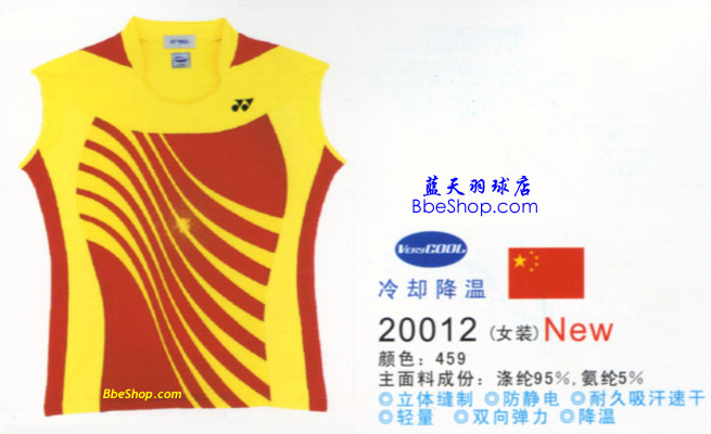 | YONEX 20012-459-Y 羽球衫(2006年尤杯中國女隊(duì)隊(duì)服) | |||