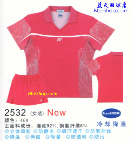 | YONEX (尤尼克斯)2532-468-R 羽毛球衫(中國女隊) | |||