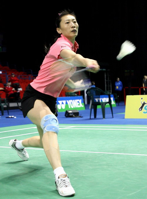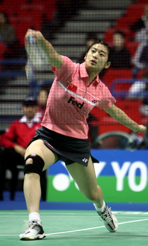 中國(guó)選手張寧在2007全英羽毛球公開賽女單決賽中 |